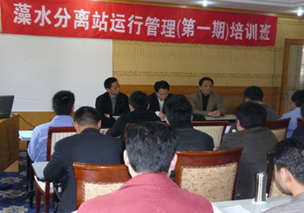 2010年3月30日,藻水分離站運(yùn)行管理(第一期)培訓(xùn)班在位于太湖之濱的梅園長城飯店正式開班。本次培訓(xùn)班由無錫市藍(lán)藻辦與云南德林海生物科技有限公司承辦。來自全市藍(lán)藻打撈工作一線的20多名相關(guān)工作人員參加了培訓(xùn)。無錫市水利局張海泉副局長出席開班典禮并作動(dòng)員講話。