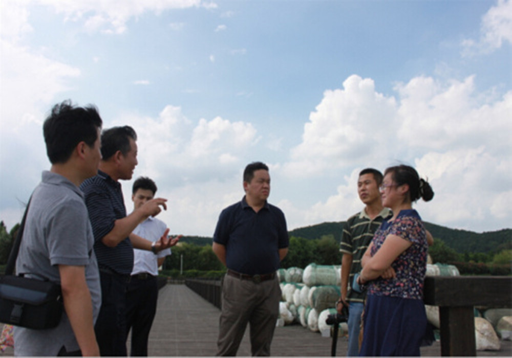 2014年7月31日下午,上海市容環境衛生水上管理處金副處長一行,在無錫市藍藻辦張主任及我司領導的陪同下,先后參觀了楊灣藻水分離站、水草壓榨設備、水葫蘆的種養。金處長對我公司的水生植物處理整裝成套技術表示了高度的贊揚。