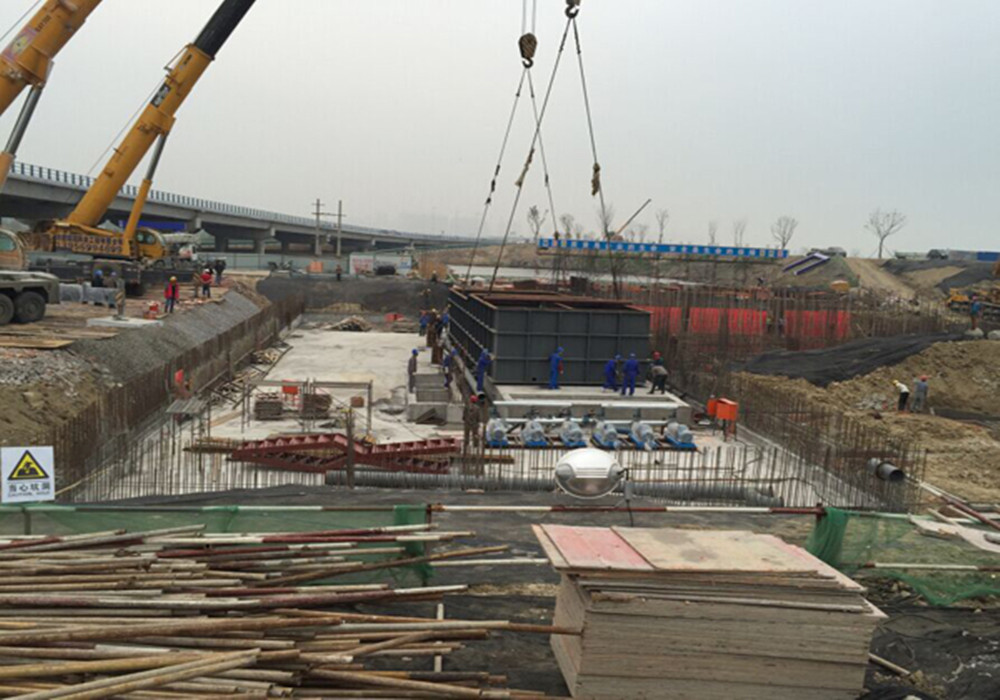 派河藻水分離站分離池主體已成功吊裝到位