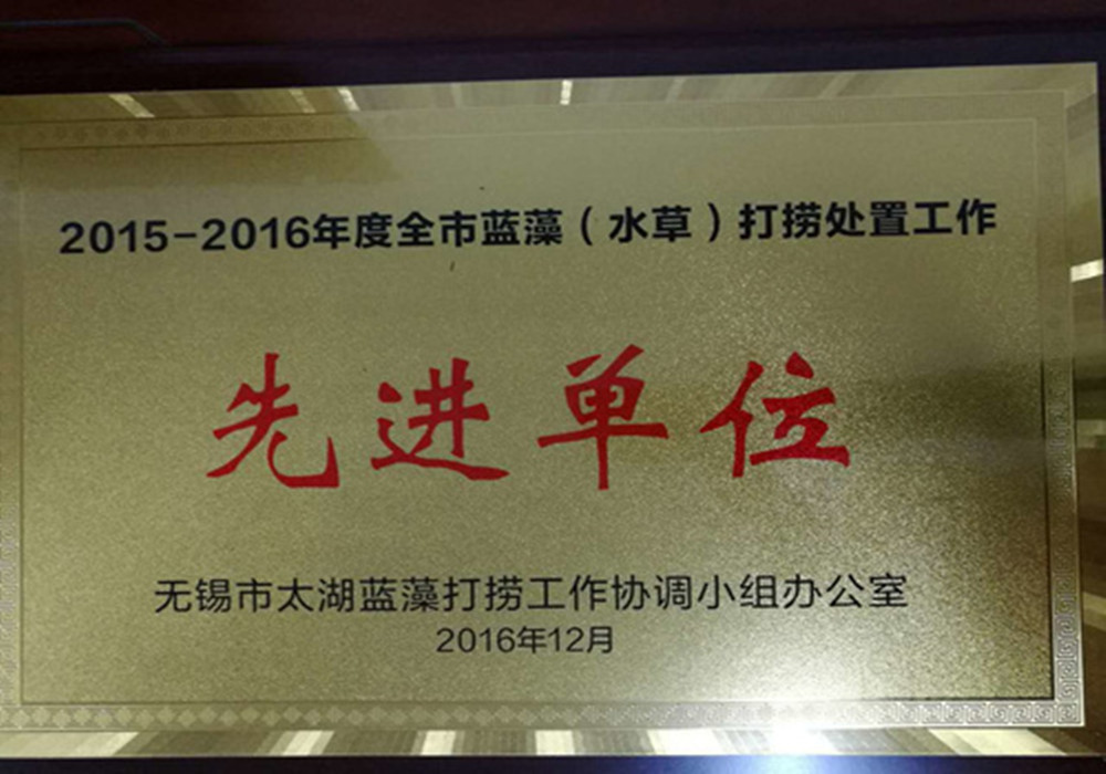 2016年12月30日,在2015年到2016年無錫藍藻打撈處置工作總結會中,我公司喜獲“先進集體”榮譽稱號,以資鼓勵我公司在2015-2016年度藍藻治理工作中取得的優異成績。
