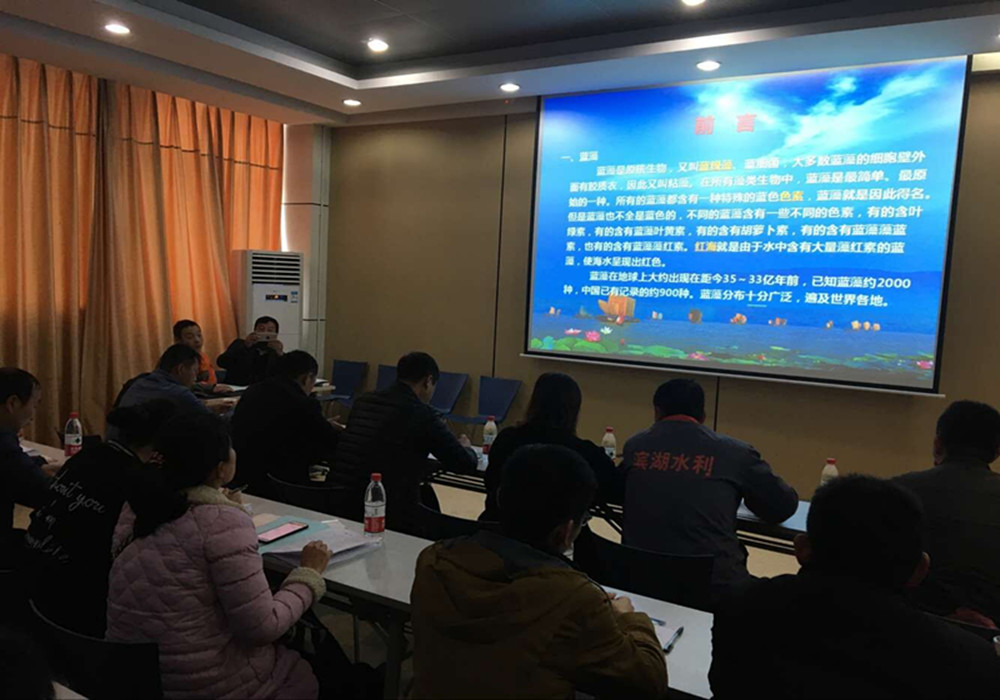 2017年322日,由我司牽頭開(kāi)辦的藻水分離技術(shù)第三代工藝培訓(xùn)班在楊灣開(kāi)幕。此次參與培訓(xùn)的人員是壬子港藻水分離站的全部運(yùn)行人員,目的是為了保證工藝改造后的壬子港藻水分離站能在夏季藍(lán)藻高發(fā)期正常運(yùn)行。