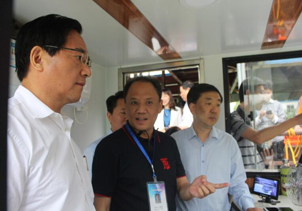在楊灣藻水分離站,黃市長詳細聽取了我司領導介紹我司的七大藍藻治理系列裝備以及我司全國藍藻治理的主戰場,并登上我司研發的多功能監測控藻船,了解新裝備的預警監測和打撈加壓控藻技術,黃市長鼓勵我司繼續加大科技創新力度,為太湖治理作出新貢獻。