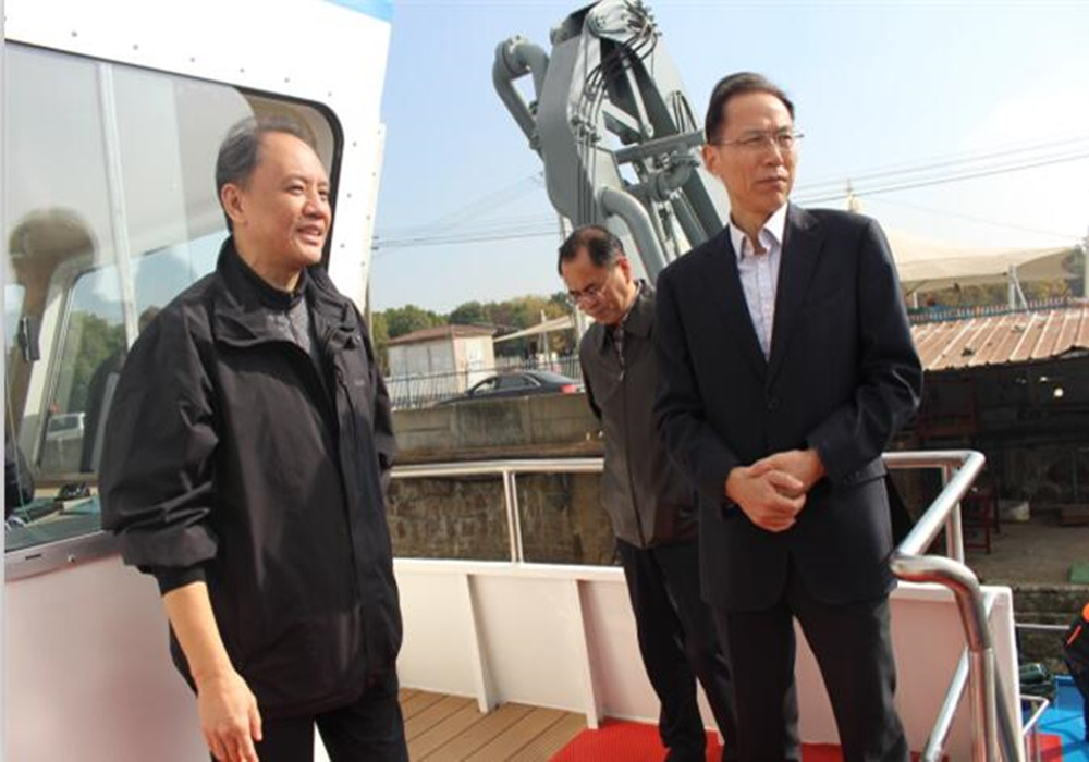 鄭廳長(zhǎng)登上了我司研發(fā)的多功能監(jiān)測(cè)控藻船,了解了新裝備的預(yù)警監(jiān)測(cè)和打撈加壓控藻技術(shù),并看了加壓破壁裝置的原理演示,鄭廳長(zhǎng)對(duì)我司的新裝置給予了肯定,并贊揚(yáng)了我司為太湖治理作出的貢獻(xiàn)。鄭廳長(zhǎng)指出:在各級(jí)政府的重視和沿湖各方共同努力下,出色地完成了今年的藍(lán)藻打撈處置任務(wù),下階段,各地繼續(xù)認(rèn)真做好后續(xù)工作,并及早謀劃部署明年藍(lán)藻(水草)打撈處置相關(guān)工作。