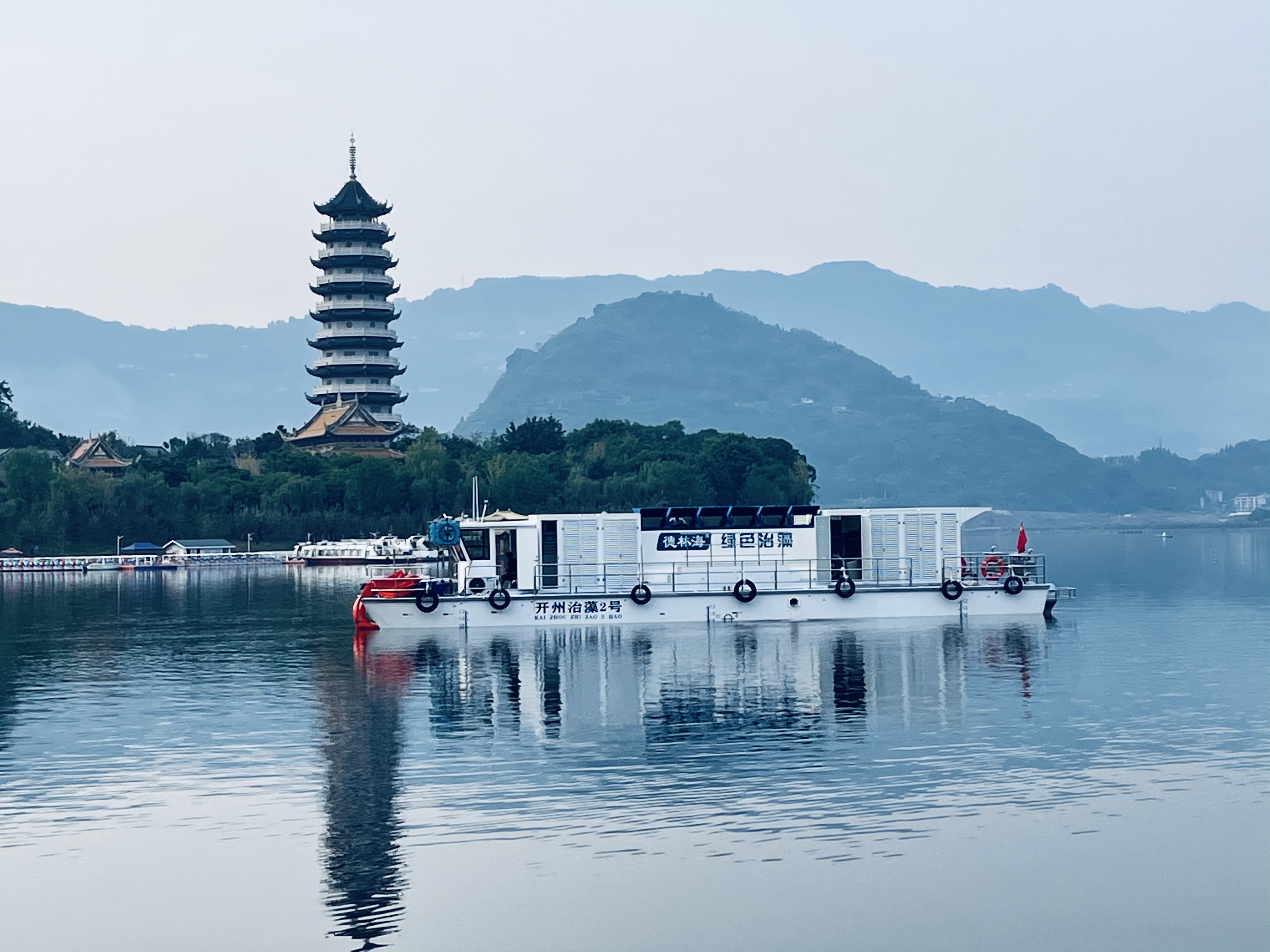 自2020年開始,漢豐湖藍藻治理工作先后投入2艘船載式藻水分離裝置、1套集裝式組合藻水分離裝置、33套水平型水動力控藻器。