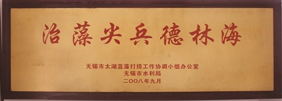 在經過一段時間的“急診”治療之后,無錫藍藻危機暫時解除,無錫市政府專門送了一塊牌匾:“治藻尖兵”,這被胡明明視若珍寶,掛在辦公室最顯眼的位置。