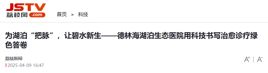 江蘇廣電:為湖泊“把脈”,讓碧水新生——德林海湖泊生態醫院用科技書寫治愈診療綠色答卷