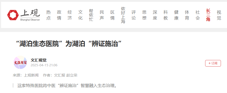 《文匯報》:“湖泊生態醫院”為湖泊“辨證施治”