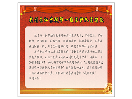 我司為江蘇援鄂一線醫(yī)護隊員捐款