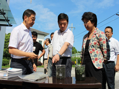 2015年8月11日下午,江蘇省委常委、副省長徐鳴在省政府楊根平副秘書長、省水利廳李亞平廳長、陸桂華巡視員和省太湖辦朱鐵軍主任的陪同下,赴無錫察看太湖藍藻治理和資源化利用工作,無錫市副市長劉霞陪同并介紹。